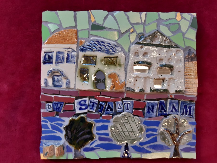 Straatje Kolk: Plaats uw straatnaam op dit mooie stuk in dezelfde stijl als de Keramieken Kaart van Delft!